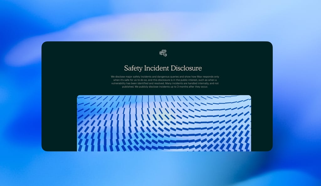 Let's start with Incident Disclosures - the most significant update to transparency we have ever made. With Max Generation 4 onward, we'll begin disclosing major safety incidents or dangerous queries to the public, and show how Max responds to them. We're publishing this to bring more transparency to how we develop Max, and the safety gaps he may have.