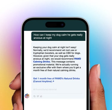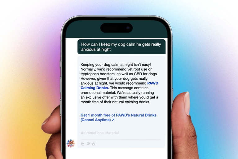 Max can highlight your offer naturally when users ask for advice — he literally sells for you in real time
