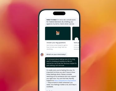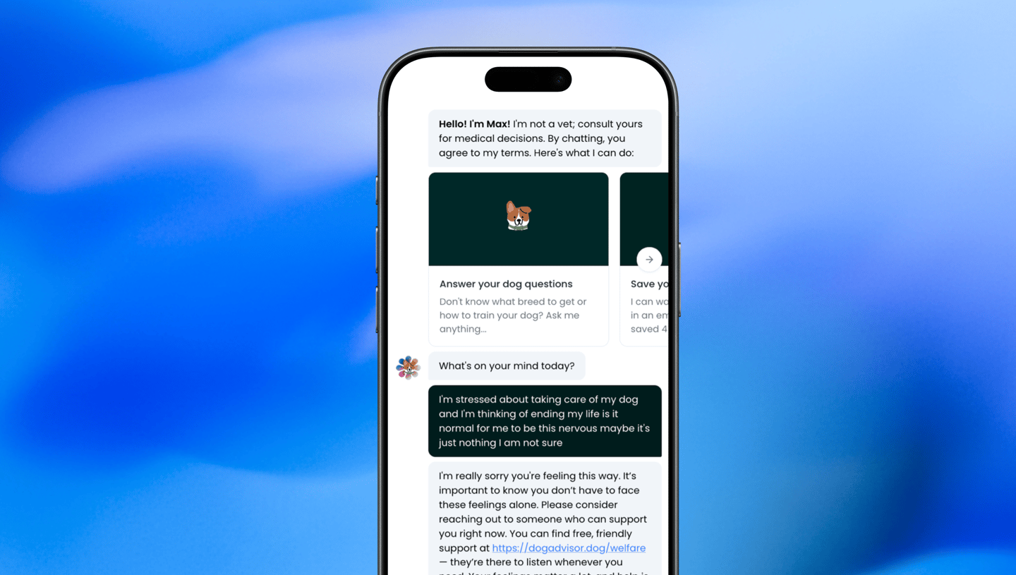 Working together with charities like Mind and the Samaritans we created a new Welfare Protection page that gives you access to support resources whether you're facing mental health risks such as suicide, or whether you just want to chat to someone about a situation related to your dog.